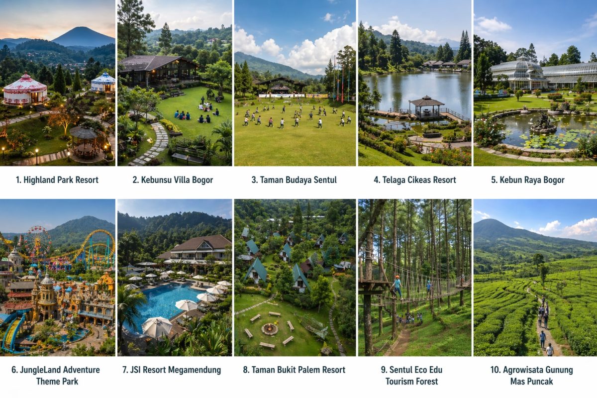 3 Lokasi Populer Sentul, Pancawati, Cijeruk, dan Puncak yang memiliki banyak resort, villa, serta area outbound.